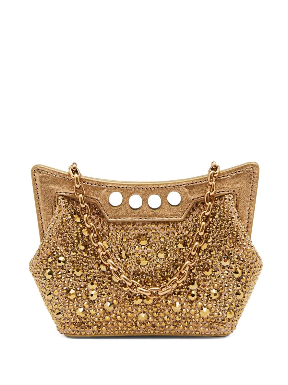 skull-stud leather shoulder bag from Alexander McQueen featuring blue, faux leather, embossed crocodile effect, skull stud detailing, silver-tone logo lettering, silver-tone hardware, chain-link shoulder strap, foldover top with magnetic fastening and main compartment.
