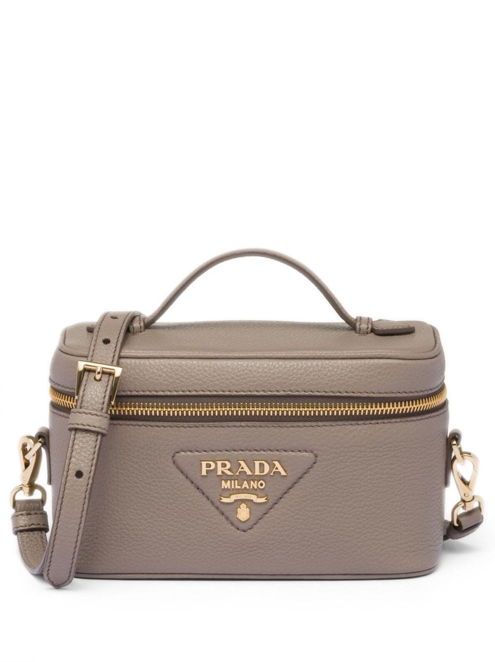 - Founded over a century ago, legendary Milanese fashion house Prada continues to innovate with luxurious designs. This smoky grey Nappa leather Matinee handbag features a top handle, a detachable and adjustable shoulder strap, a front logo plaque and an interior zipped compartment.