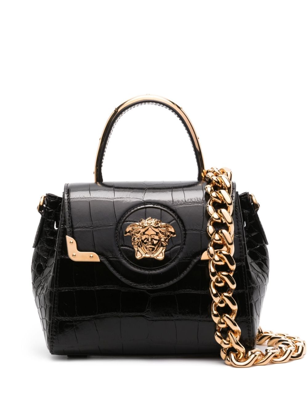 Versace Virtus crystal-embellished leather shoulder bag